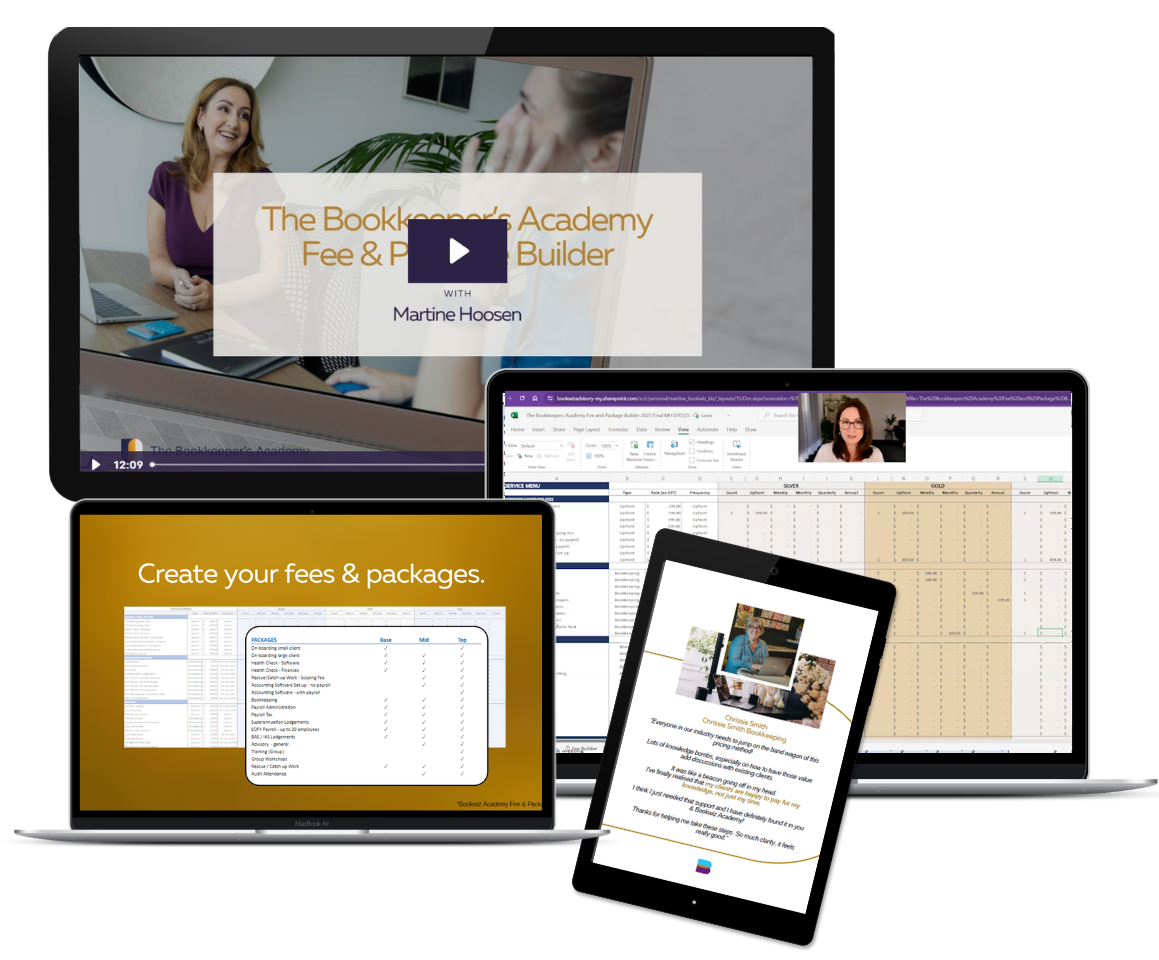 Every module includes all the resources you need to put your learnings into action. Downloadable templates, explanatory guides, fee and package builders, capacity calculators, client workpapers, end of period processes, business plan templates, video demonstrations, webinars, onboarding procedures, and Martine's expert insights - you'll be guided through the process from learning to implementation.